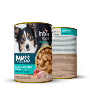 INTERNUTRI MUSS LAMB & CHICKEN é um alimento húmido completo, criado tendo em consideração as características e necessidades nutricionais dos cães adultos. Uma deliciosa receita com pedaços de cordeiro (5%) e frango (5%) cozinhados no forno. Sem corantes nem sabores artificiais, com uma fórmula nutricionalmente equilibrada e segura, elevada palatabilidade e inclui ingredientes antialérgicos sendo indicado para animais mais sensíveis aos problemas digestivos e de pele.