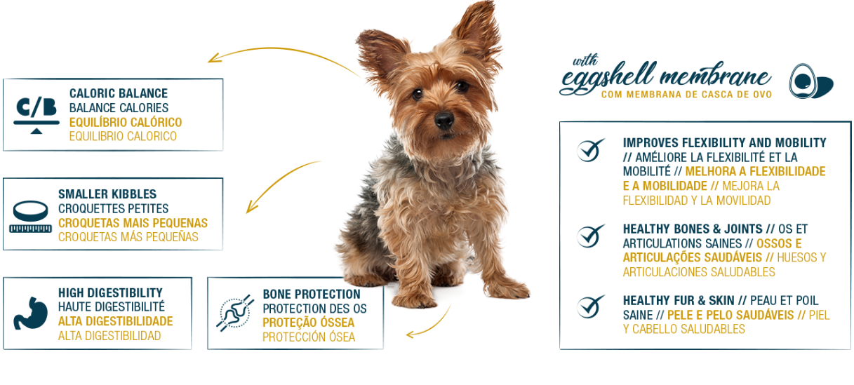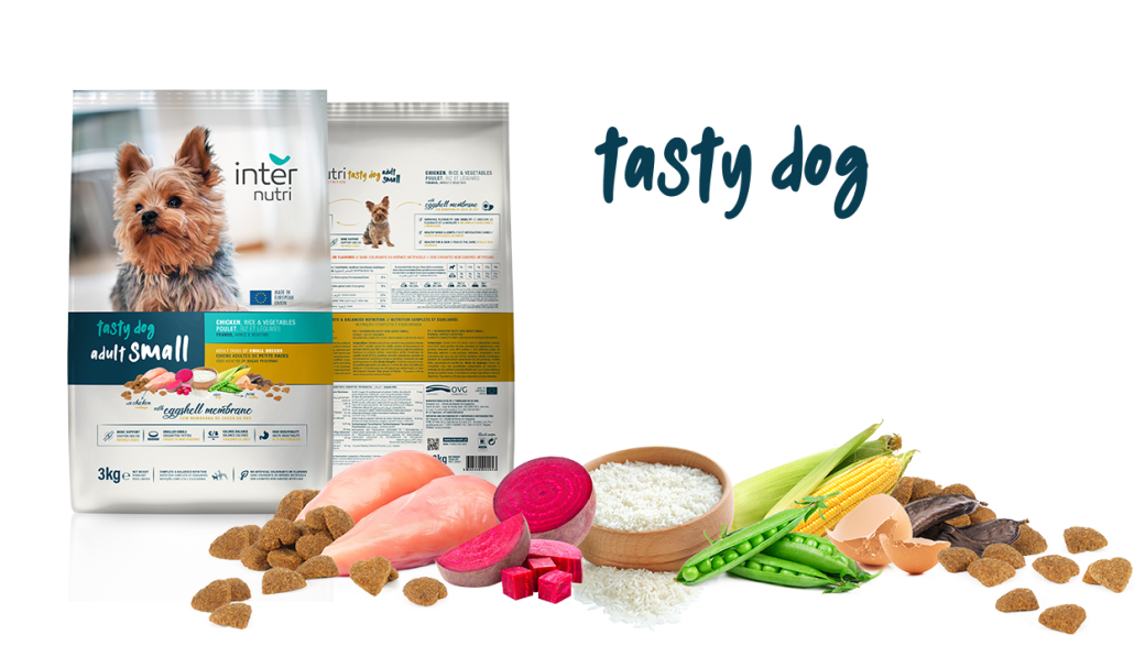 INTERNUTRI TASTY DOG ADULT SMALL é um alimento seco completo, elaborado tendo em consideração as características e necessidades nutricionais dos cães de raças pequenas. Sem corantes nem sabores artificiais, a sua fórmula nutricionalmente equilibrada e segura traz os benefícios da membrana da casca de ovo, para ossos e articulações saudáveis, com ação anti-inflamatória e reforço do sistema imunitário.
